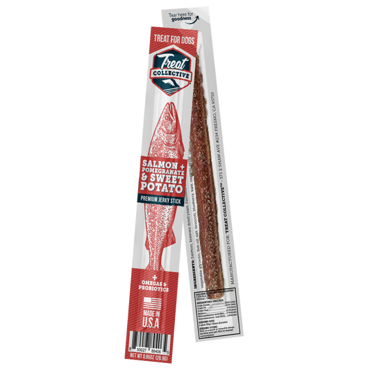 Salmon + Pomegranate & Sweet Potato Single Jerky Sticks (16 Pack)